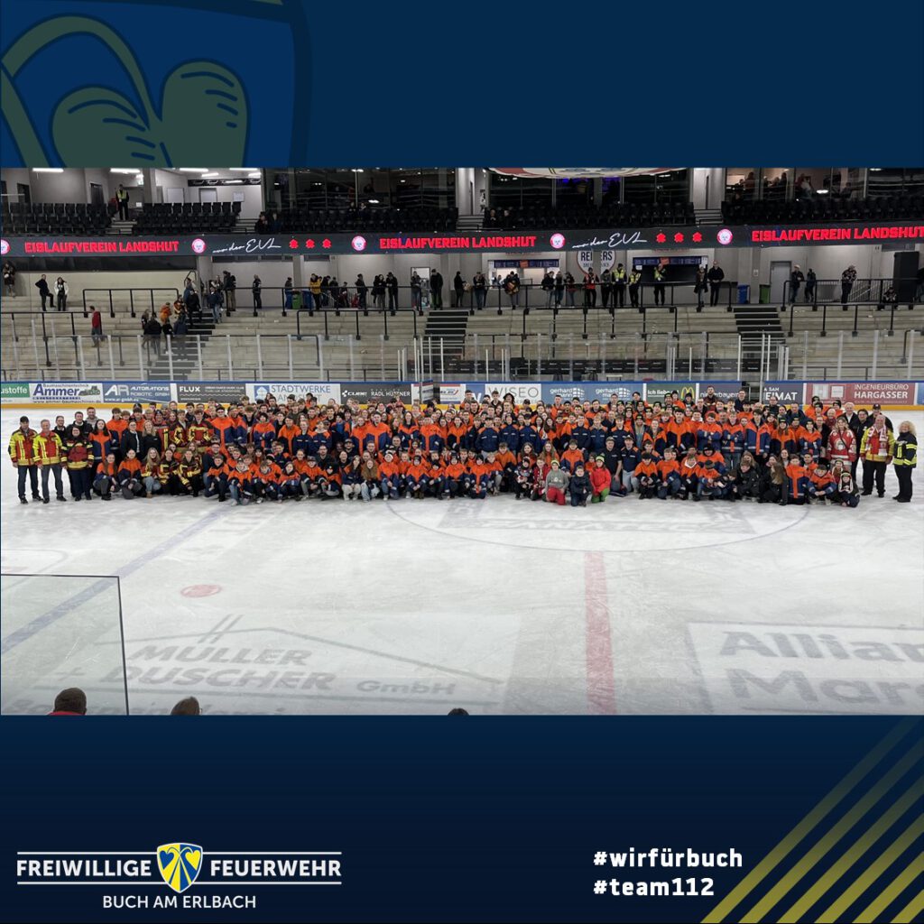Heute waren rund 400 Jugendfeuerwehrler aus Stadt und Landkreis Landshut auf Einladung des EV Landshut beim Eishockeyspiel gegen die Kassel Huskies im Stadion und konnten einen 5:2 Sieg bejubeln.